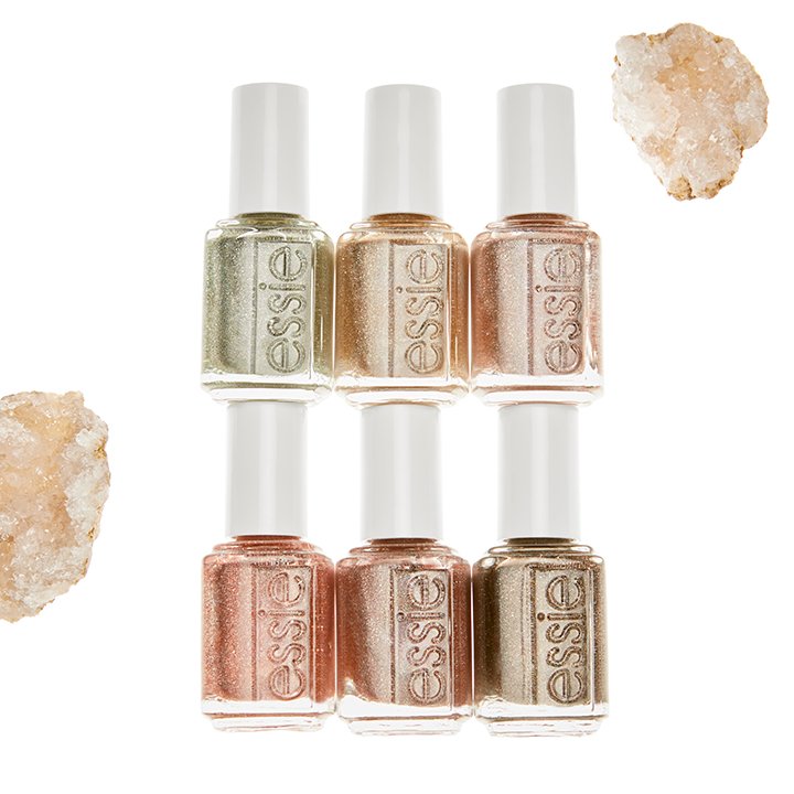 essiegorge-ous geodes$9.00a holographic copper metallic nail polish illuminated with coral overtones (metallic)view detailsessieof quartz$9.00a holographic sandy nude metallic nail polish with tones of calming beige (metallic)view detailsessierock your world$9.00a holographic silver metallic nail polish with ivory overtones (metallic)view detailsessiesemi-precious tones$9.00a holographic champagne gold metallic nail polish (metallic)view detailsessiestop, look & glisten$9.00a holographic charcoal gray metallic nail polish (metallic)view detailsyou're a gem$9.00a holographic neutral mauve purple metallic nail polish with hints of chocolate brown (metallic)view details
